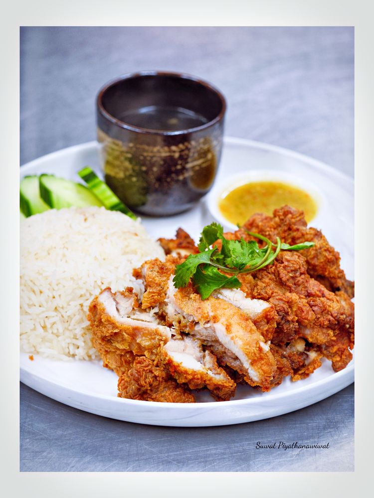 Fried rice with egg, onion, scallion topped with crispy chicken and fried egg in special fried rice sauce.