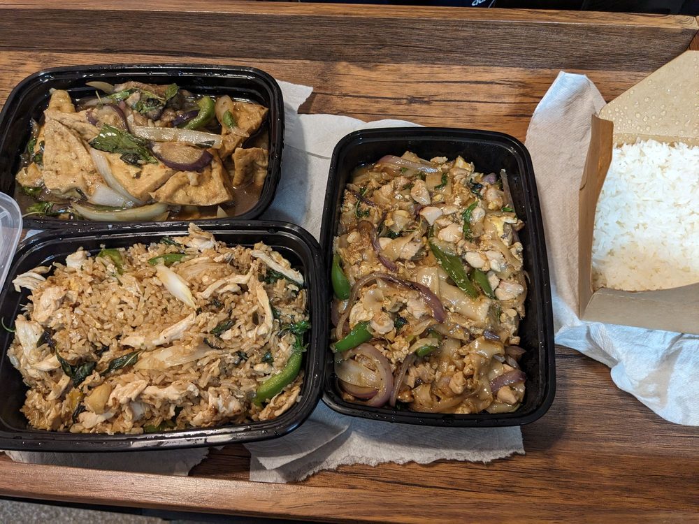 Fried rice with your choice of protein, egg, onions, bell peppers, and basil leaves in Thai sauce (contains oyster sauce). Be sure to purchase utensils if you'll need them (from the cutlery option).