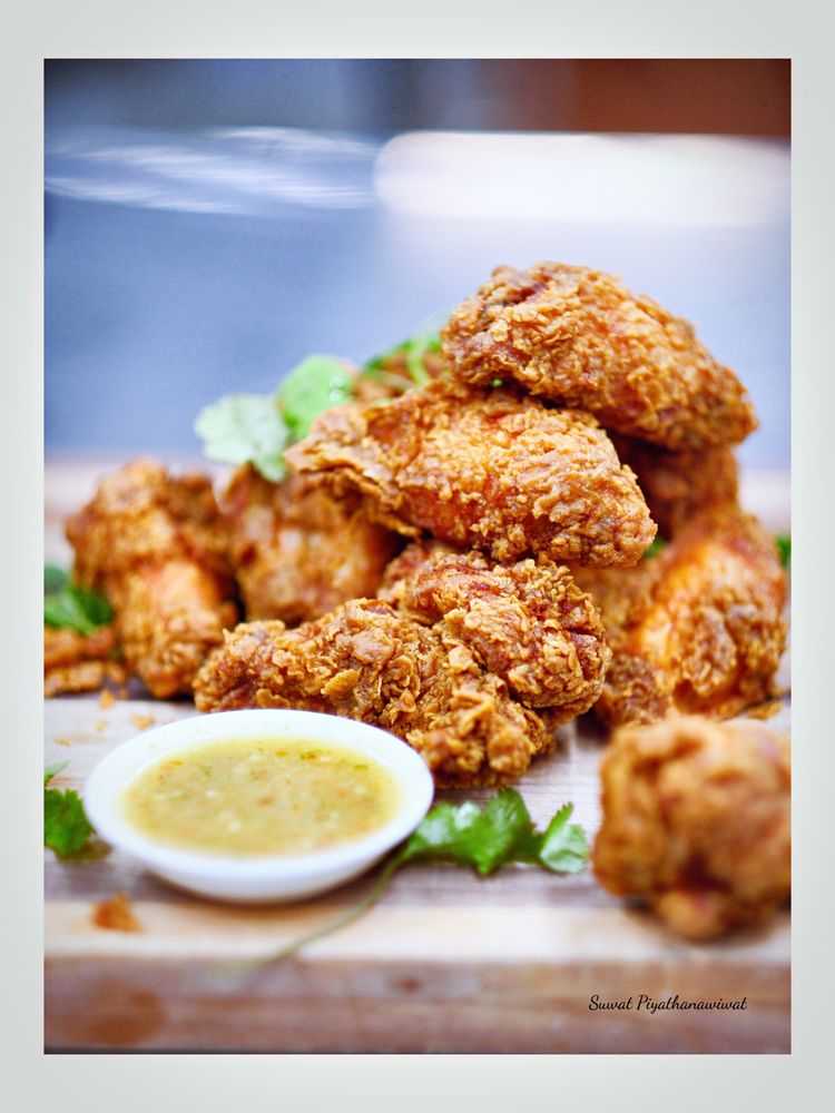 Deep-fried seasoning chicken wings, served with sweet sauce.