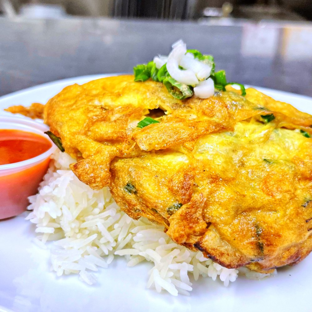 Fried rice with your choice of protein, egg, Chinese broccoli, onions, and tomatoes (contains oyster sauce). Be sure to purchase utensils if you'll need them (from the cutlery option).